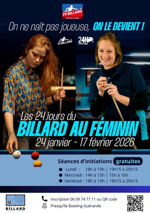 Du 24 janvier au 17 février 2026, le club propose des séances gratuites de découverte et d’initiation au billard, ouvertes à toutes.