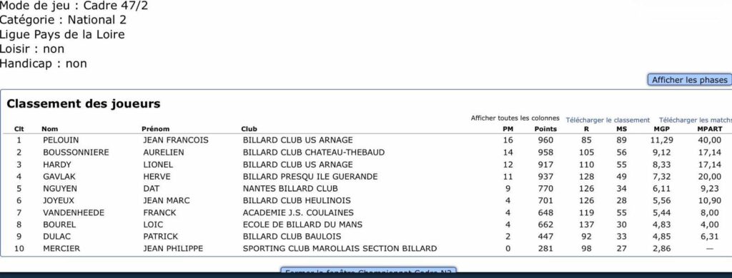 Qualification hier pour Herve Gavlak lors de la finale de ligue des Pays de la Loire au cadre 47/2 ![]()
